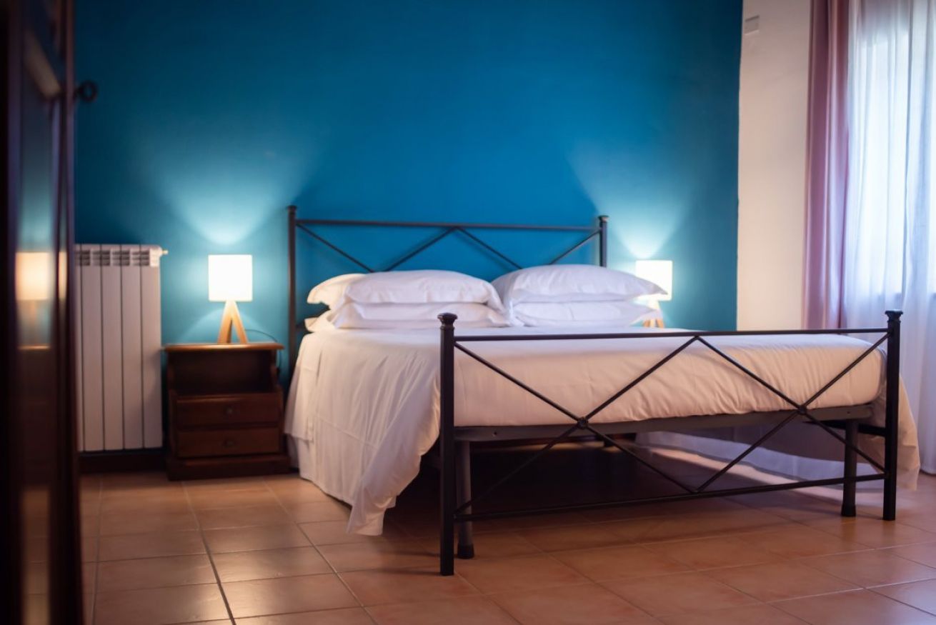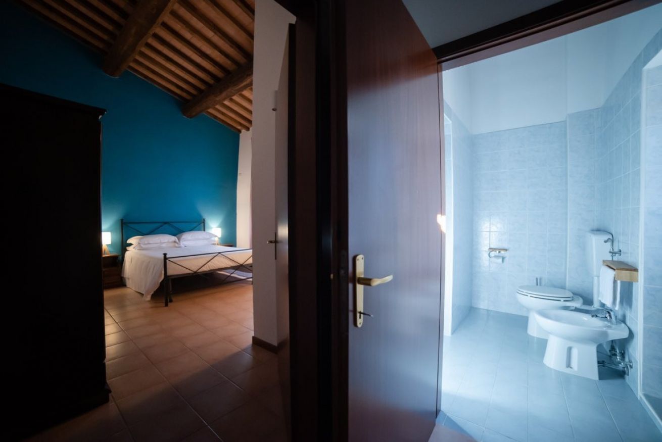 Camera di 30mq situata al primo piano con letto matrimoniale e ampio bagno privato per un massimo di 2 persone.